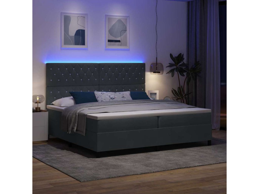 LED box pružinová postel s čelo Tmavě šedá 200 x 200 cm textil 3343269