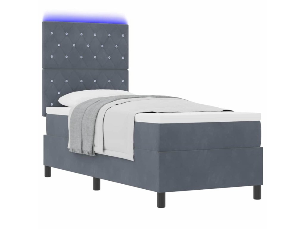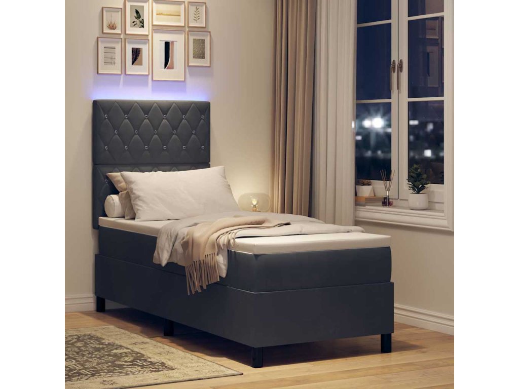 LED box pružinová postel s čelo Tmavě šedá 80 x 200 cm textil 3343209
