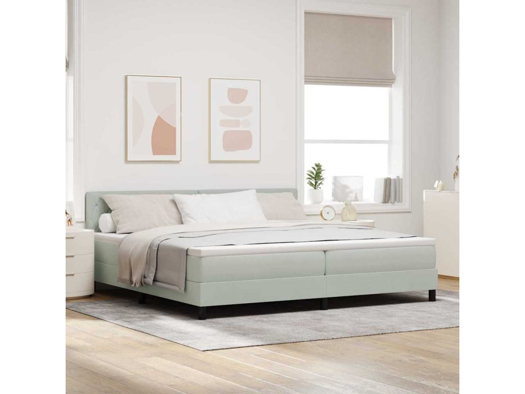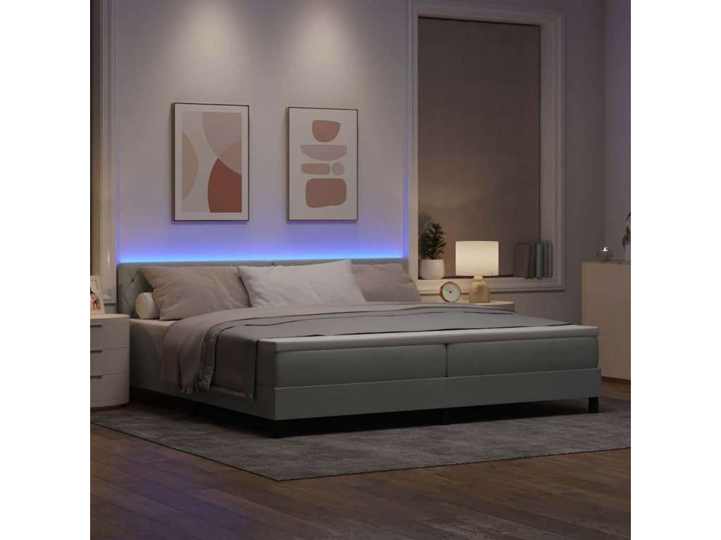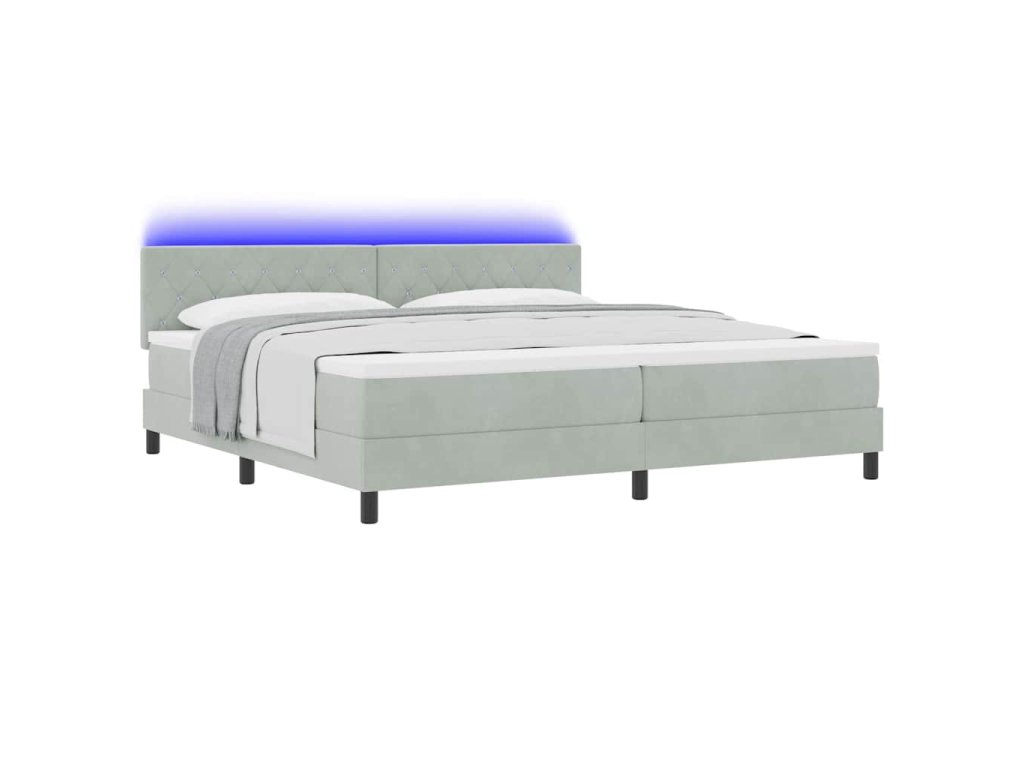 LED box pružinová postel s LED Světle šedá 200 x 200 cm samet 3342608