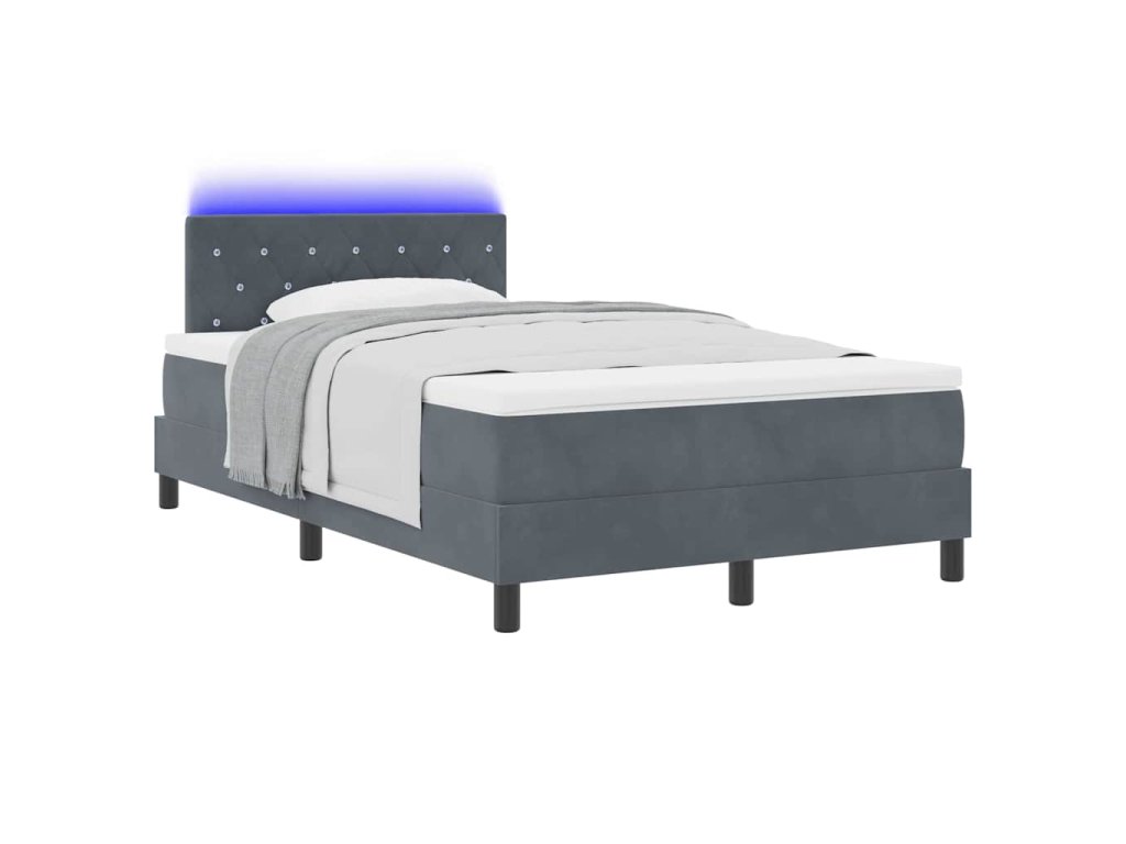 LED box pružinová postel s LED Tmavě šedá 120 x 200 cm samet 3342579