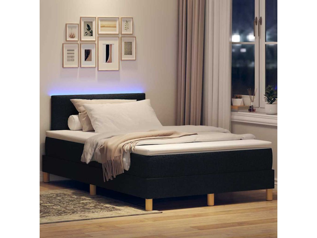 LED box pružinová postel s matrací Černá 120 x 200 cm textil 3342431