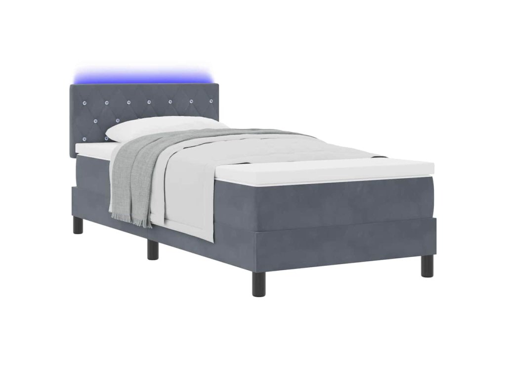 LED box pružinová postel s matrací Tmavě šedá 90 x 190 cm samet 3342555