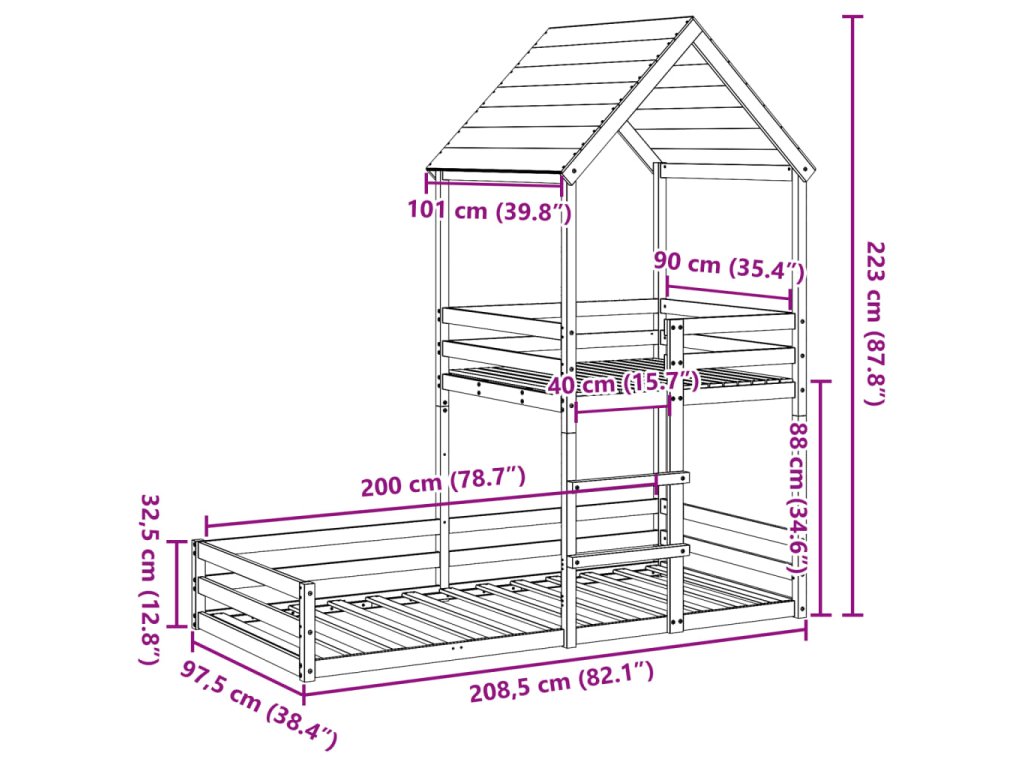 Patrová postel bez matrace 90 x 200 cm masivní borové dřevo 3282390