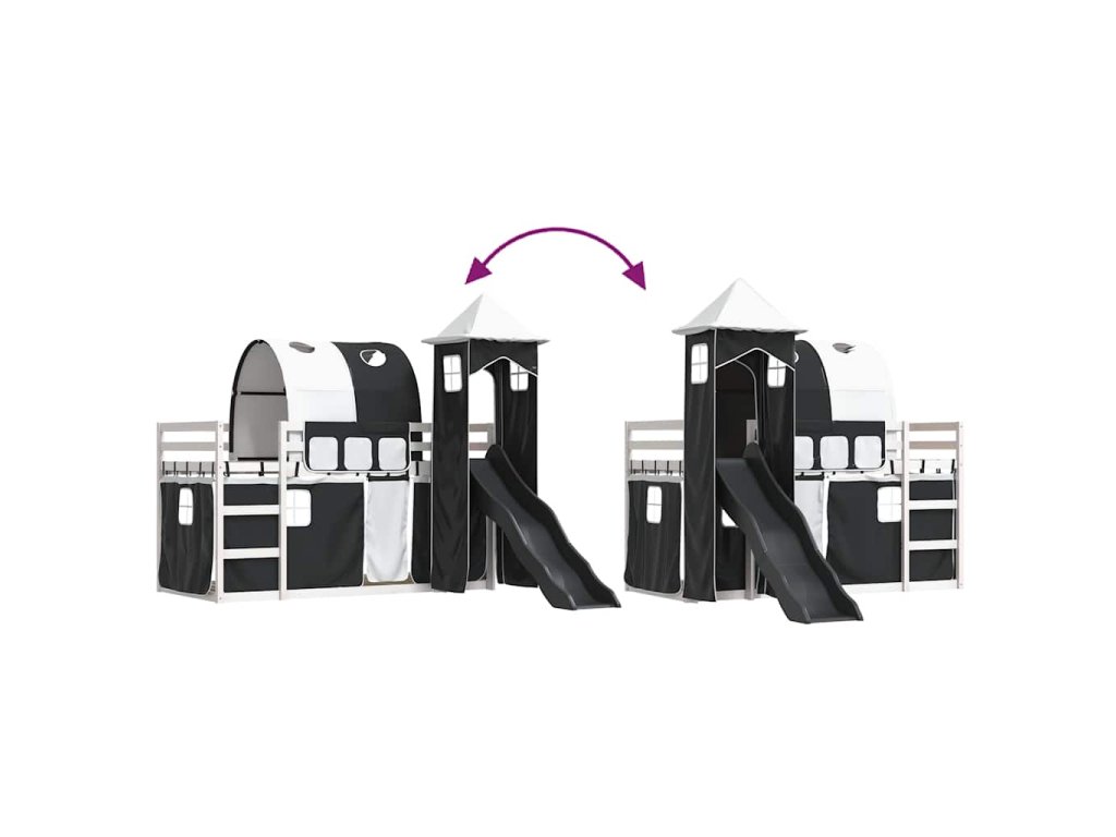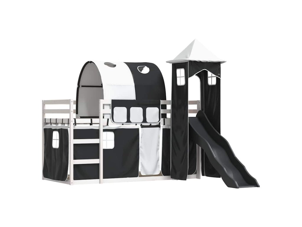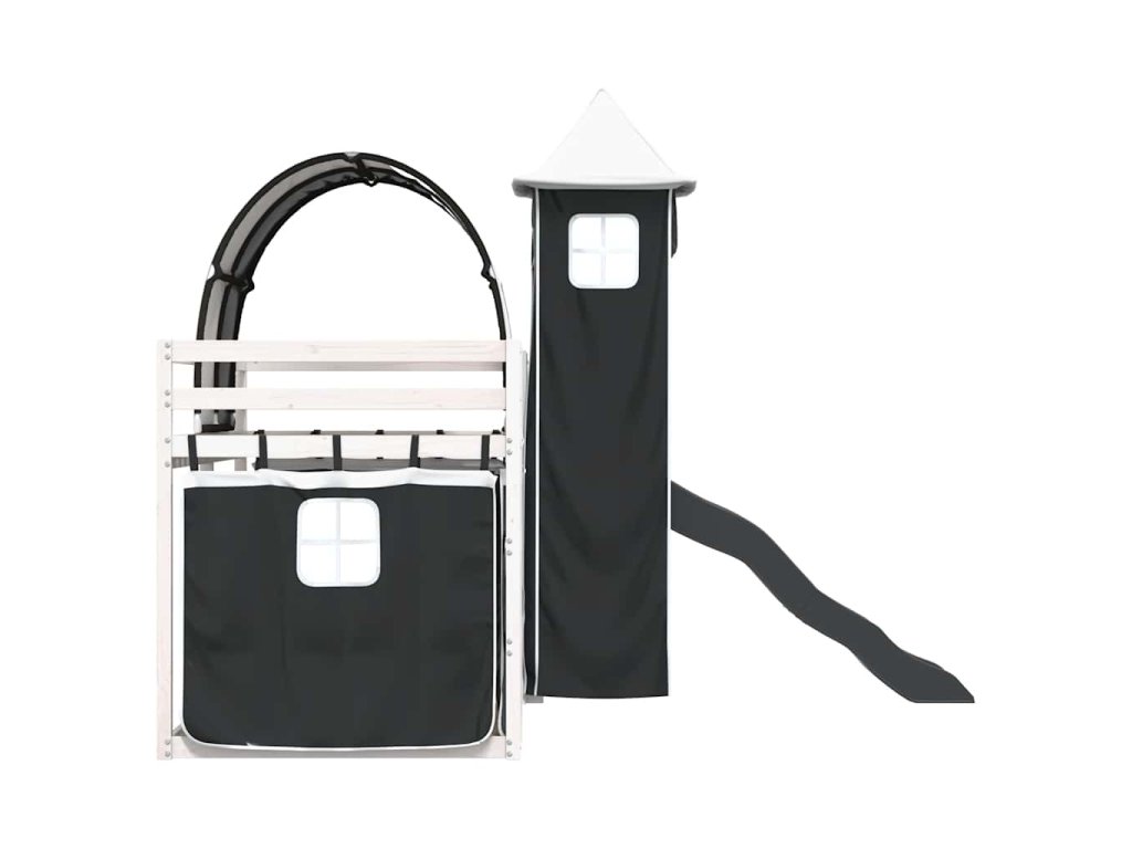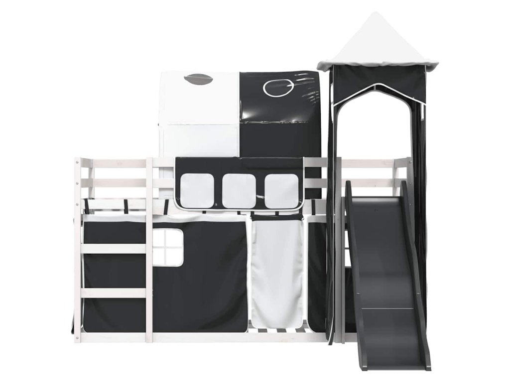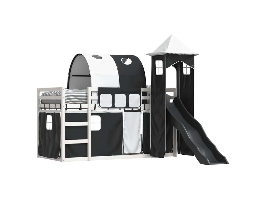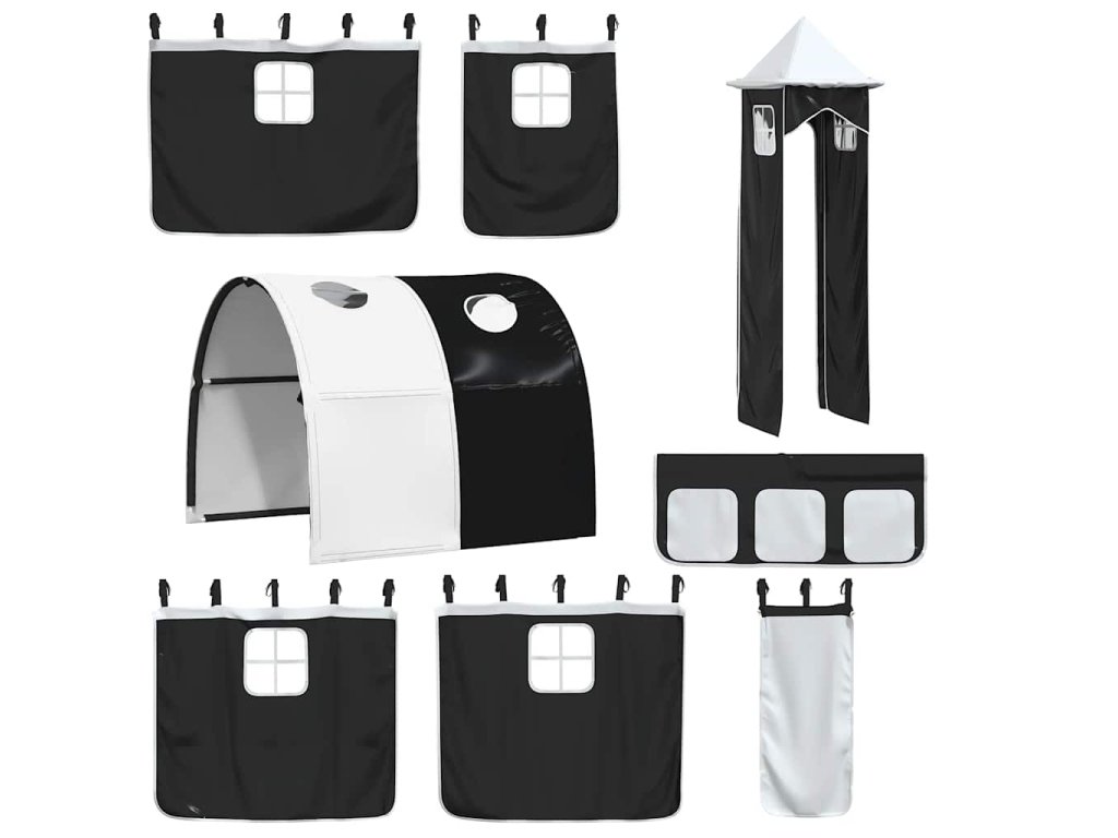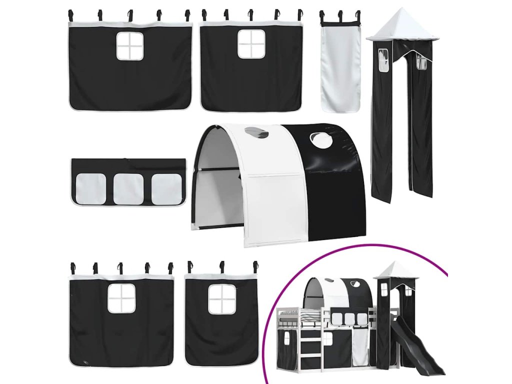 Patrová postel se skluzavkou a závěsy bílá a černá 90 x 190 cm 3284182