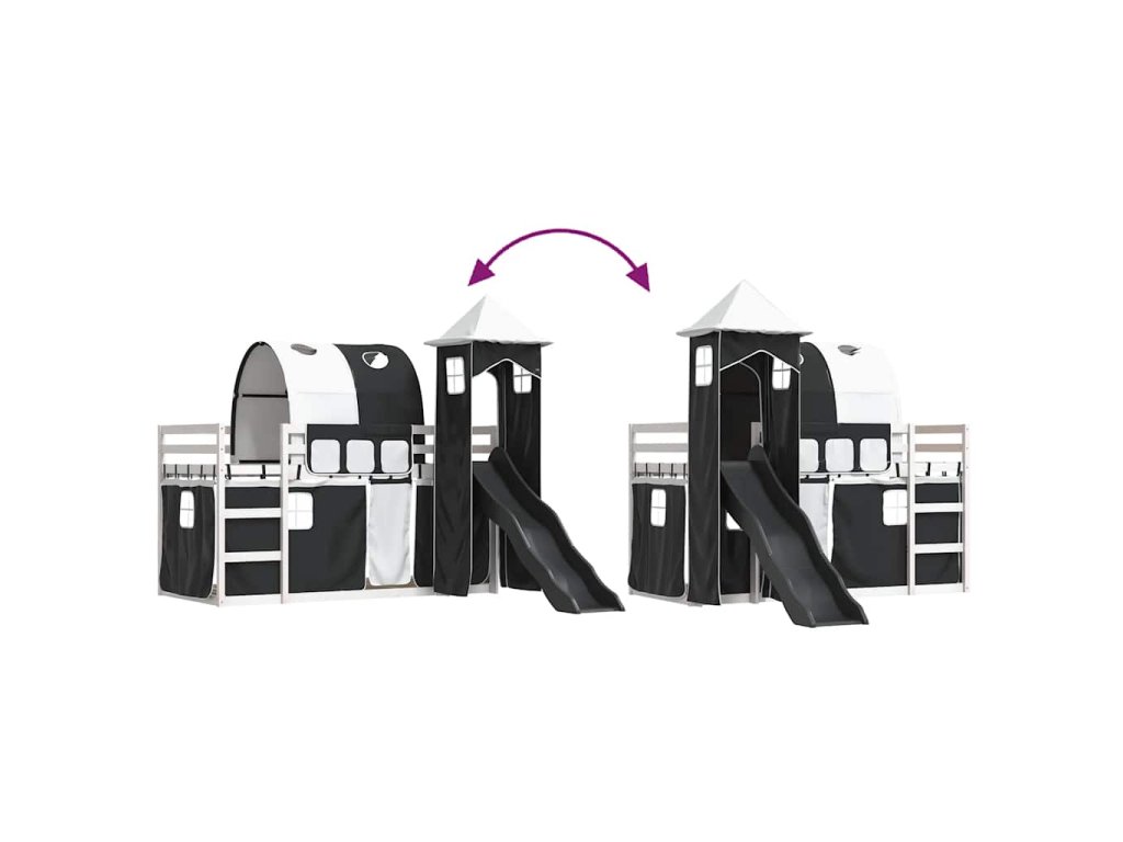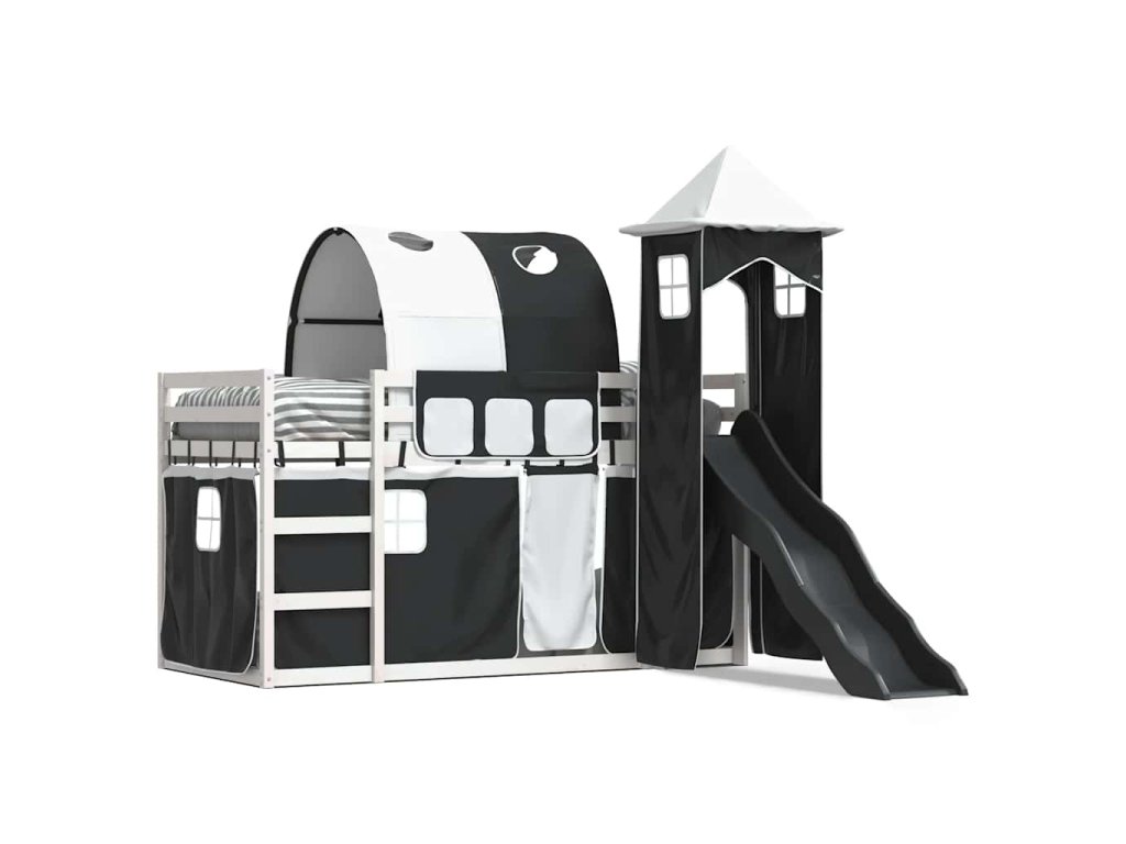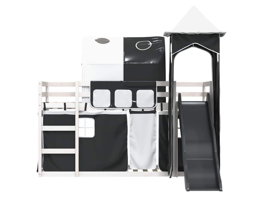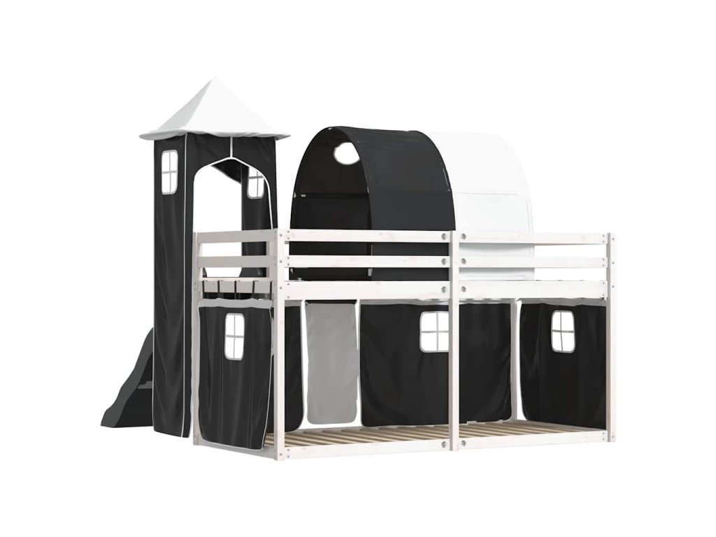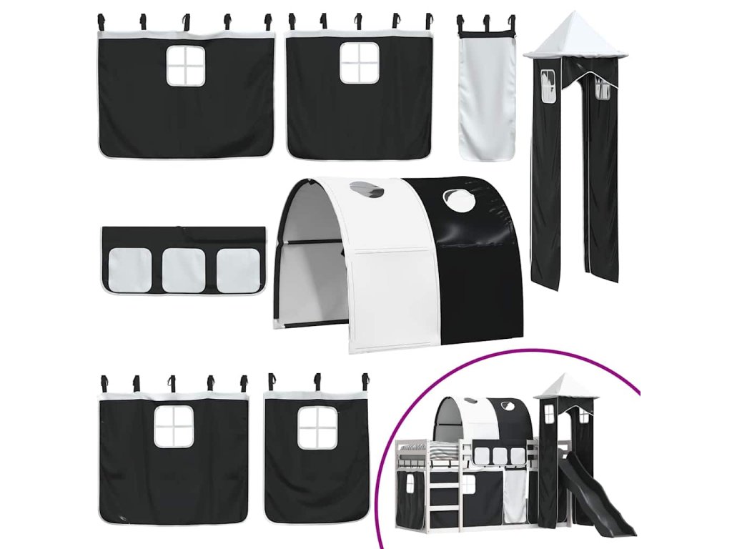Patrová postel se skluzavkou a závěsy bílá a černá 90 x 200 cm 3284164