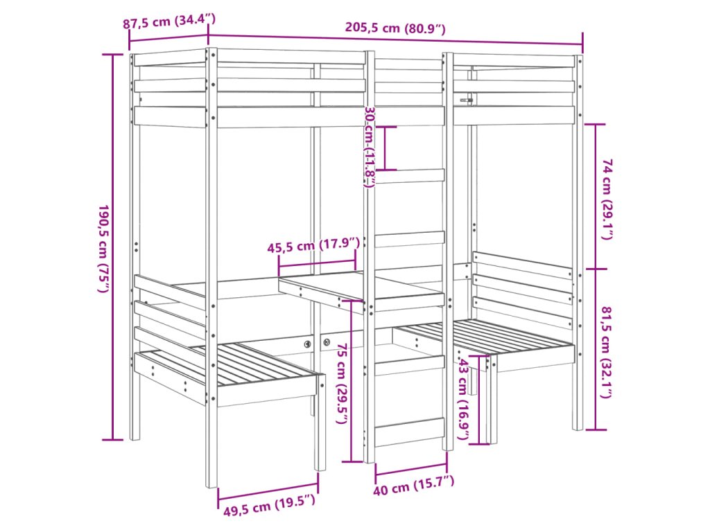 - Maximalizujte využití prostoru: Tento postelový rám má ve spodní části psací stůl se dvěma židlemi, takže efektivně využívá prostor pod postelí a poskytuje útulné místo pro práci a studium. Je ideální volbou pro menší nebo stísněné prostory.