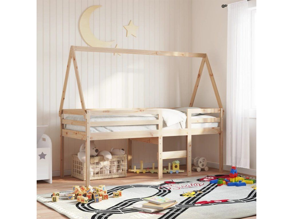 Patrová postel se střechou 80 x 200 cm masivní borové dřevo 3282095