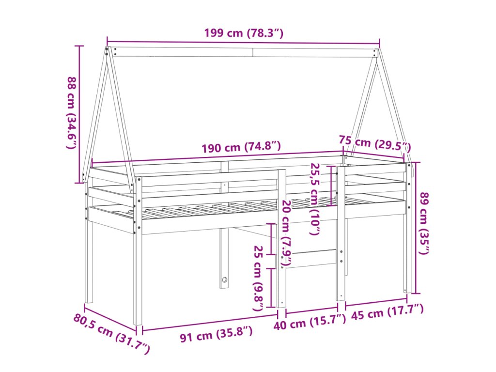 Patrová postel se střechou bílá 75 x 190 cm masivní borovice 3282102