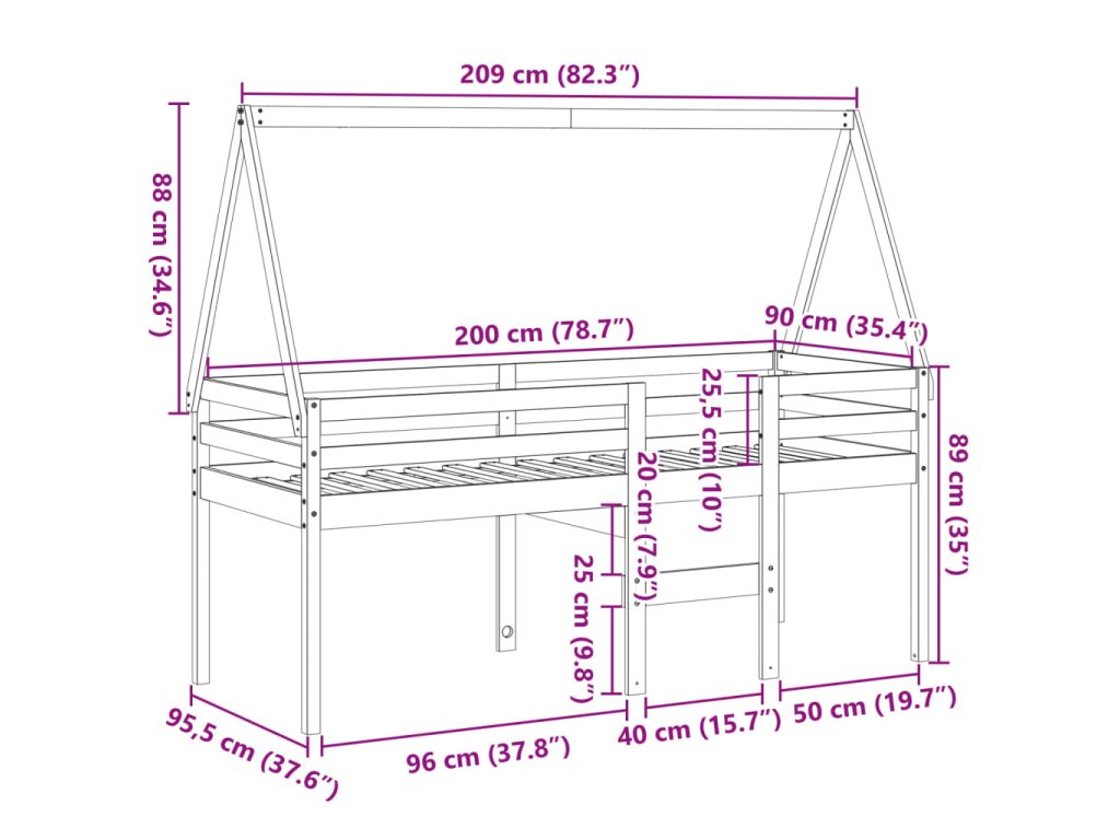 Patrová postel se střechou bílá 90 x 200 cm masivní borovice 3282093