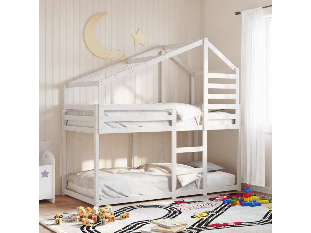 Patrová postel se střechou bílá 90x200 cm masivní borové dřevo 3281962