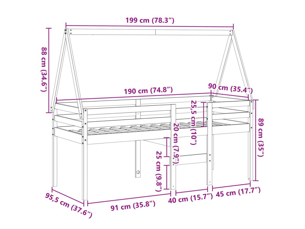 - Bezpečný design: Zabudovaný žebřík usnadňuje vylézání do postele a slézání z ní. Ochranná zábrana zajistí, že vaše ratolesti budou během spánku v bezpečí.