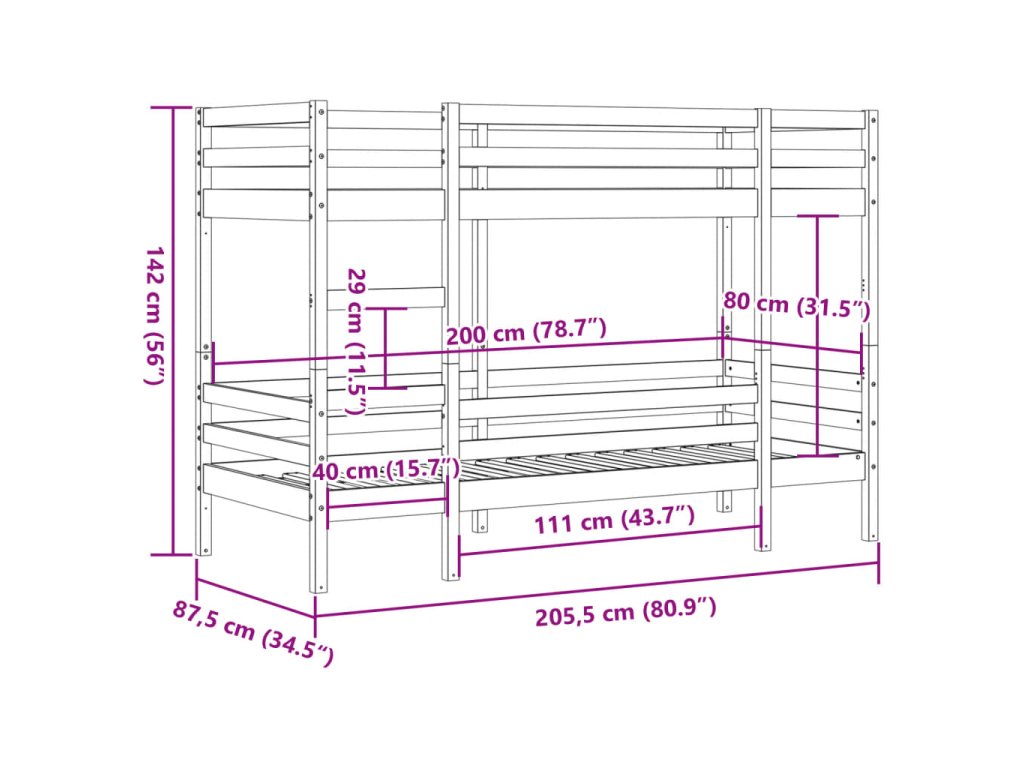 - Vhodné do omezeného prostoru: Patrová postel z masivního dřeva je skvělou volbou do každé místnosti s omezeným prostorem a poskytuje dvě samostatná lůžka s kompaktním designem.