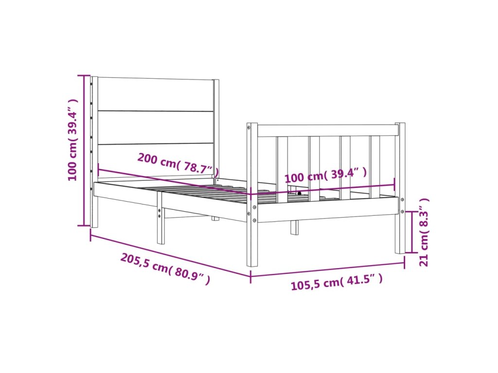 - Celkové rozměry postele: 205,5 x 105,5 x 100 cm (D x Š x V)