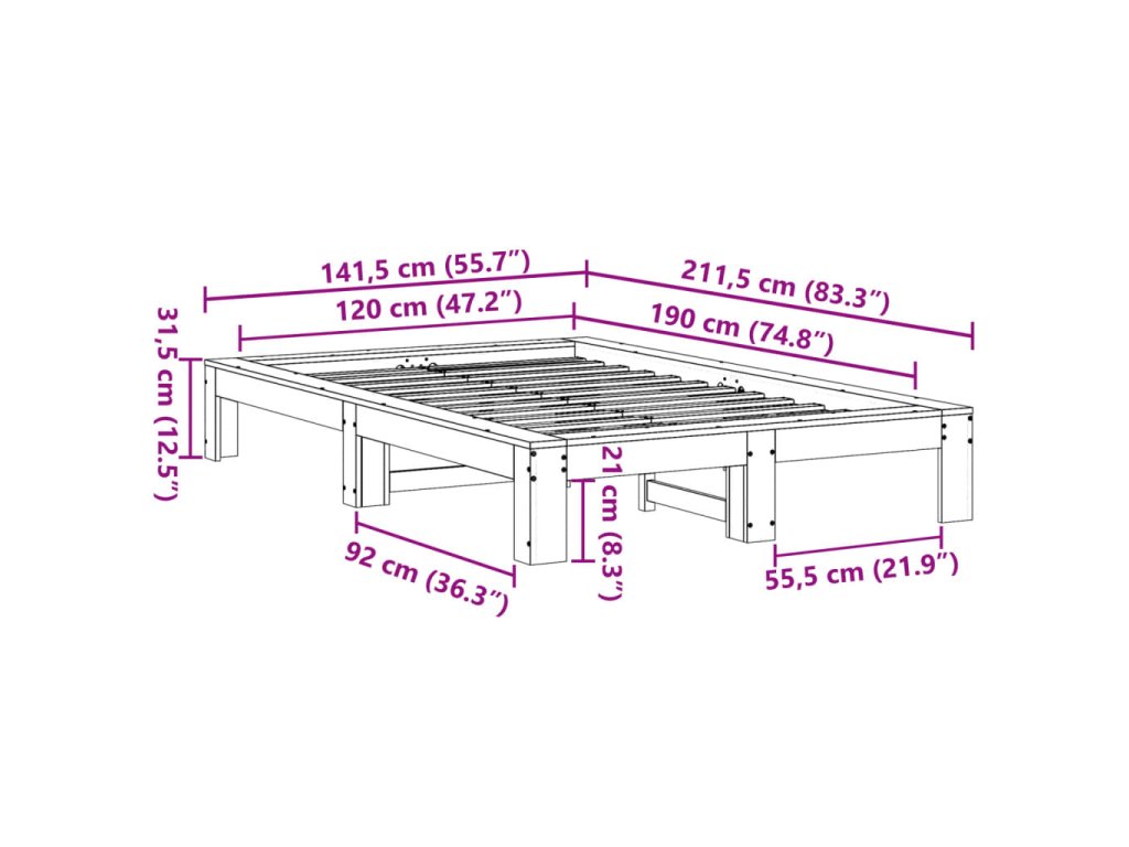Postel bez matrace 120 x 190 cm masivní borovice 3308750