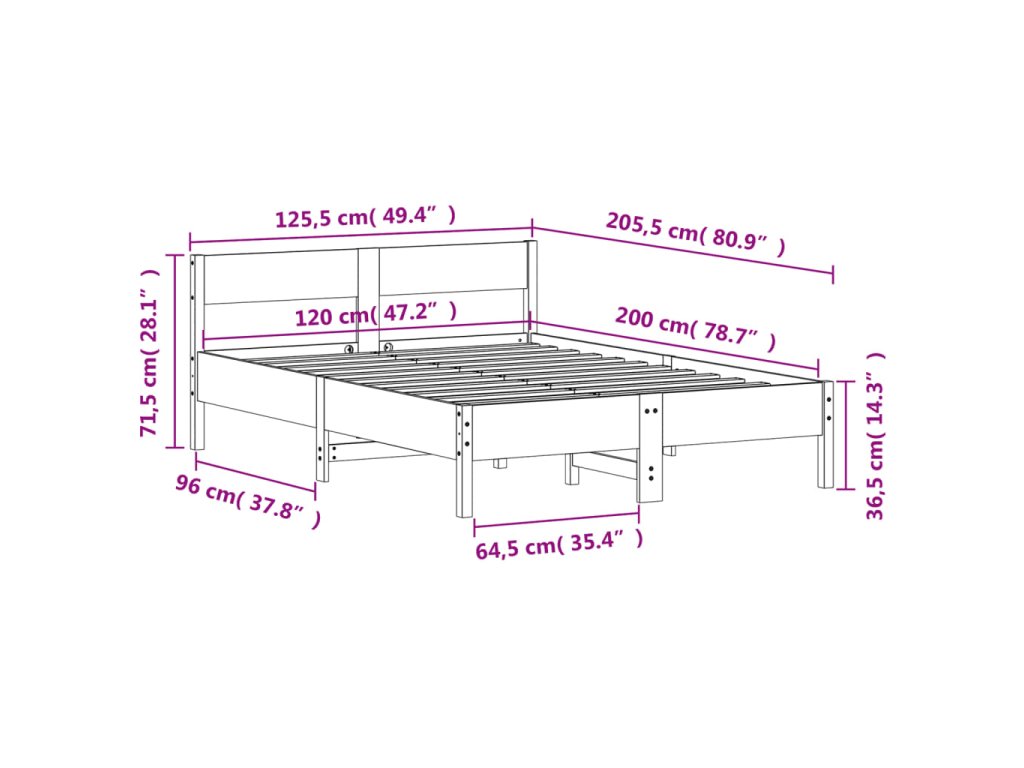 Postel bez matrace 120 x 200 cm masivní borovice 842754