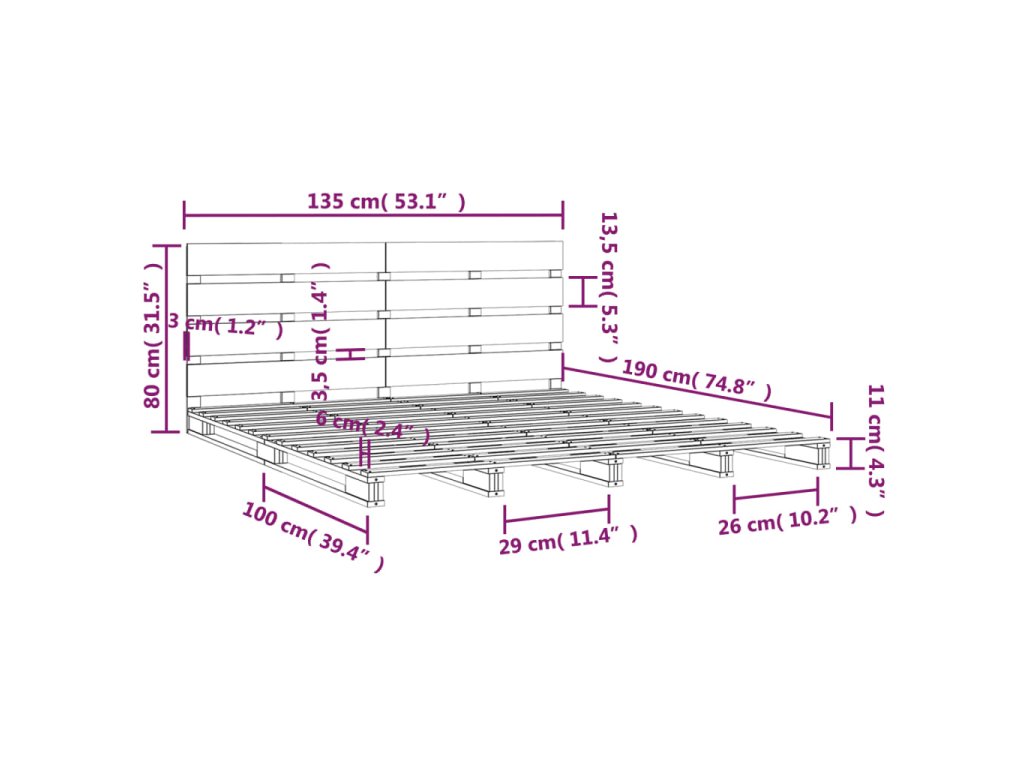 - Tento rám postele je vhodný pro matrace o rozměrech 135 x 190 cm (4FT6 Double).