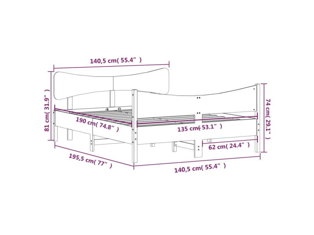 Postel bez matrace 135 x 190 cm masivní borovice 3216396
