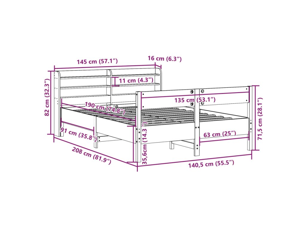 Postel bez matrace 135 x 190 cm masivní borovice 3306942