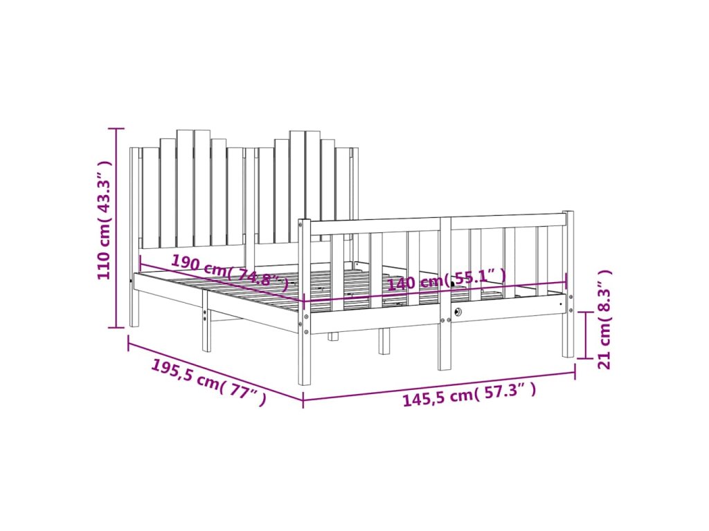 - Celkové rozměry postele: 195,5 x 145,5 x 110 cm (D x Š x V)