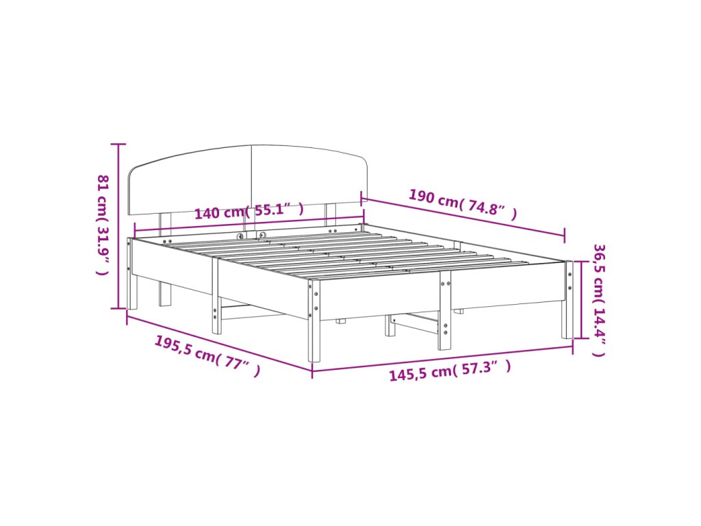 Postel bez matrace 140 x 190 cm masivní borovice 3207225