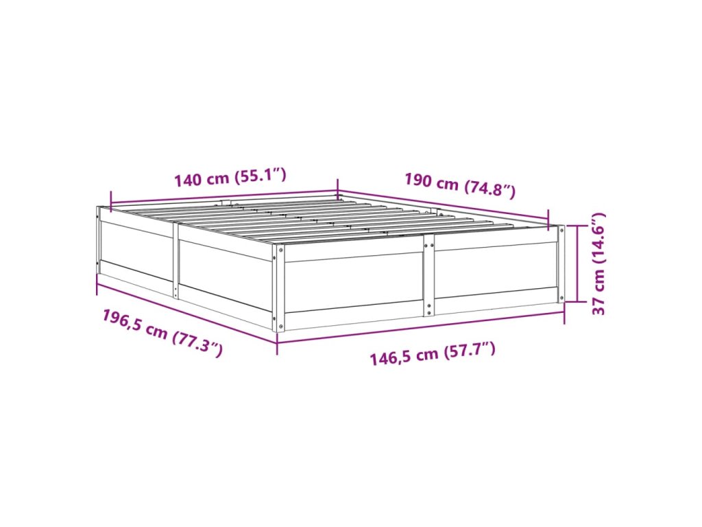 Postel bez matrace 140 x 190 cm masivní borovice 3282381