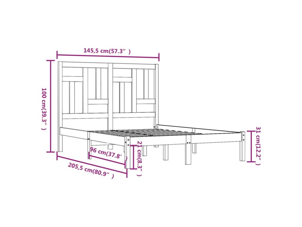 - Rozměry rámu postele: 205,5 x 145,5 x 31 cm (D x Š x V)