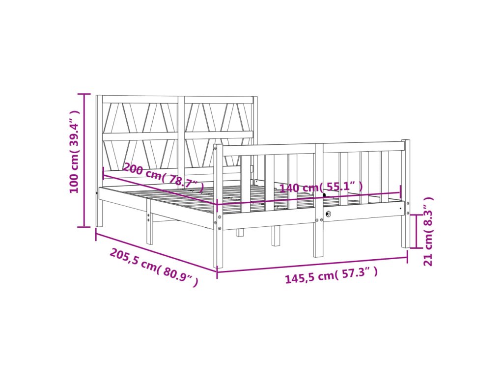 - Celkové rozměry postele: 205,5 x 145,5 x 100 cm (D x Š x V)
