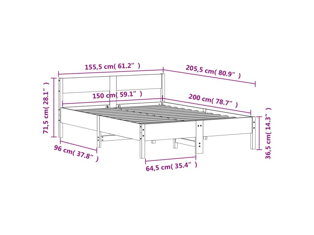 Postel bez matrace 150 x 200 cm masivní borovice 842746