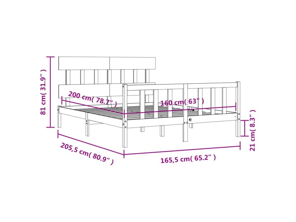 - Celkové rozměry postele: 205,5 x 165,5 x 81 cm (D x Š x V)