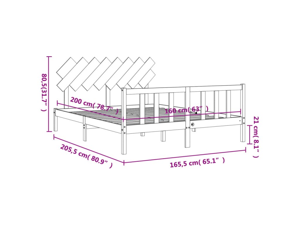 - Celkové rozměry postele: 205,5 x 165,5 x 80,5 cm (D x Š x V)