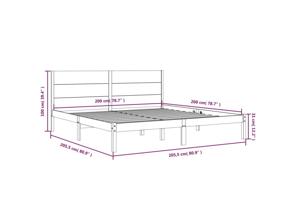 Postel bez matrace 200 x 200 cm masivní borovice 3104173
