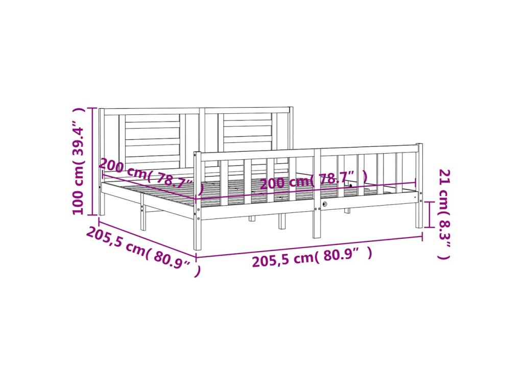 Postel bez matrace 200 x 200 cm masivní borovice 3192901
