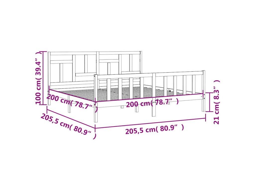Postel bez matrace 200 x 200 cm masivní borovice 3193161
