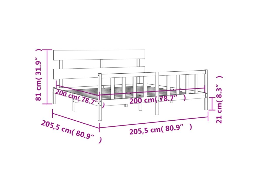 - Celkové rozměry postele: 205,5 x 205,5 x 81 cm (D x Š x V)