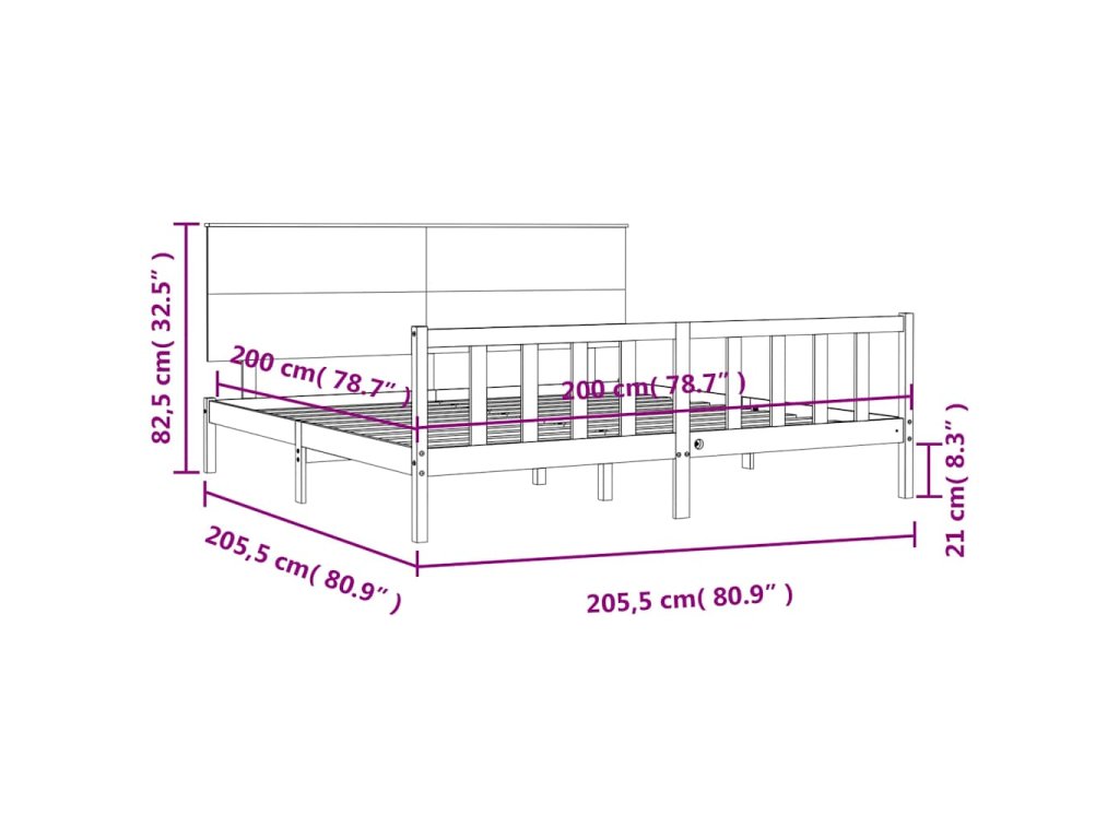 Postel bez matrace 200 x 200 cm masivní borovice 3193421