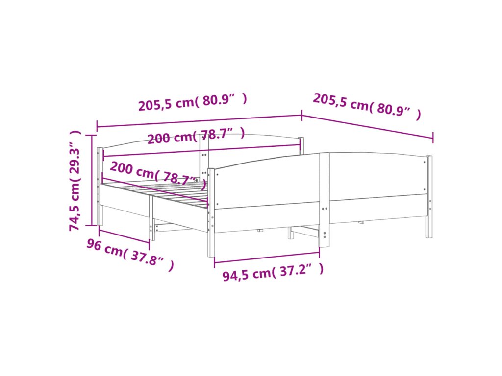 Postel bez matrace 200 x 200 cm masivní borovice 3216161