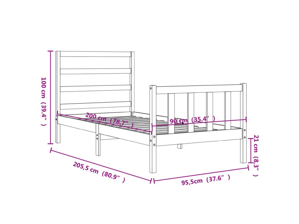 - Celkové rozměry postele: 205,5 x 95,5 x 100 cm (D x Š x V)