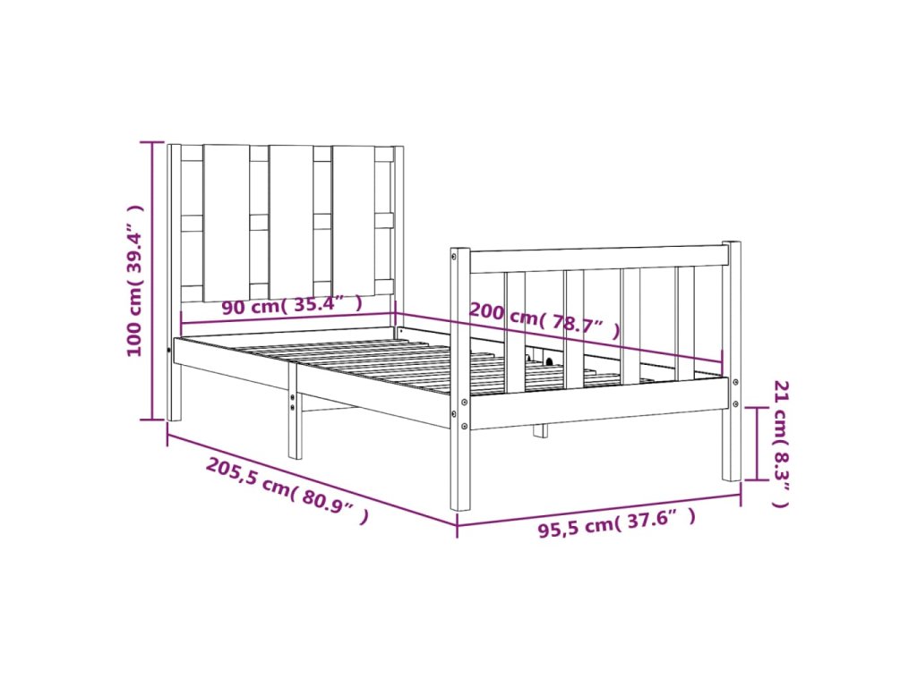 - Celkové rozměry postele: 205,5 x 95,5 x 100 cm (D x Š x V)