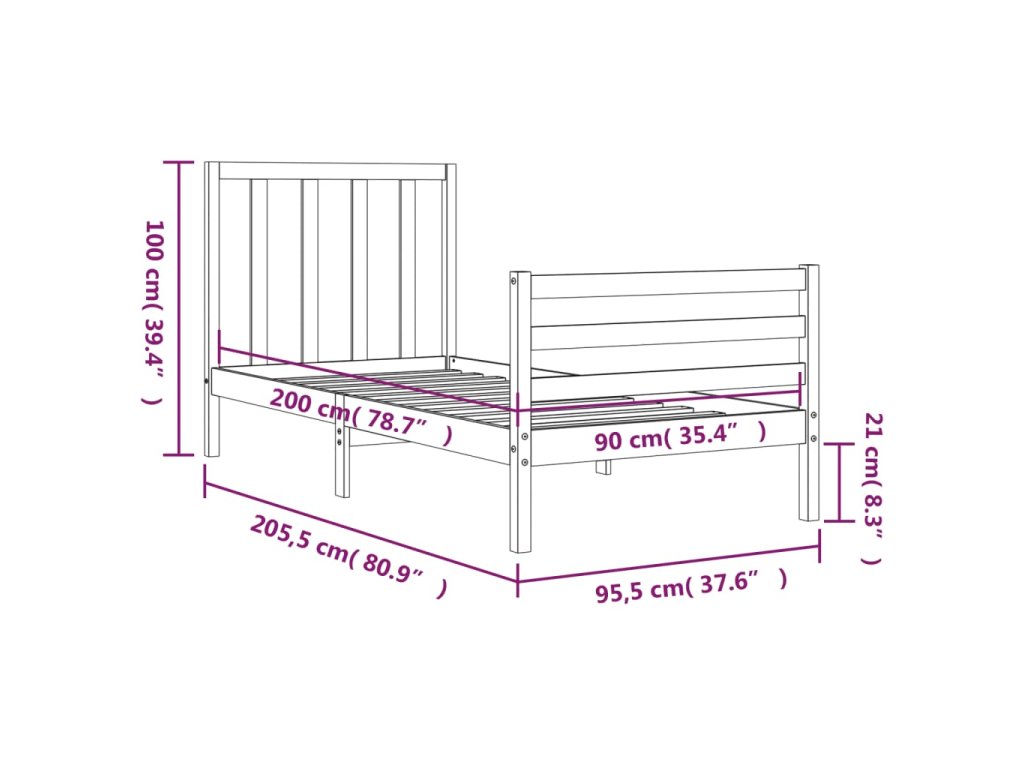 - Celkové rozměry postele: 205,5 x 95,5 x 100 cm (D x Š x V)