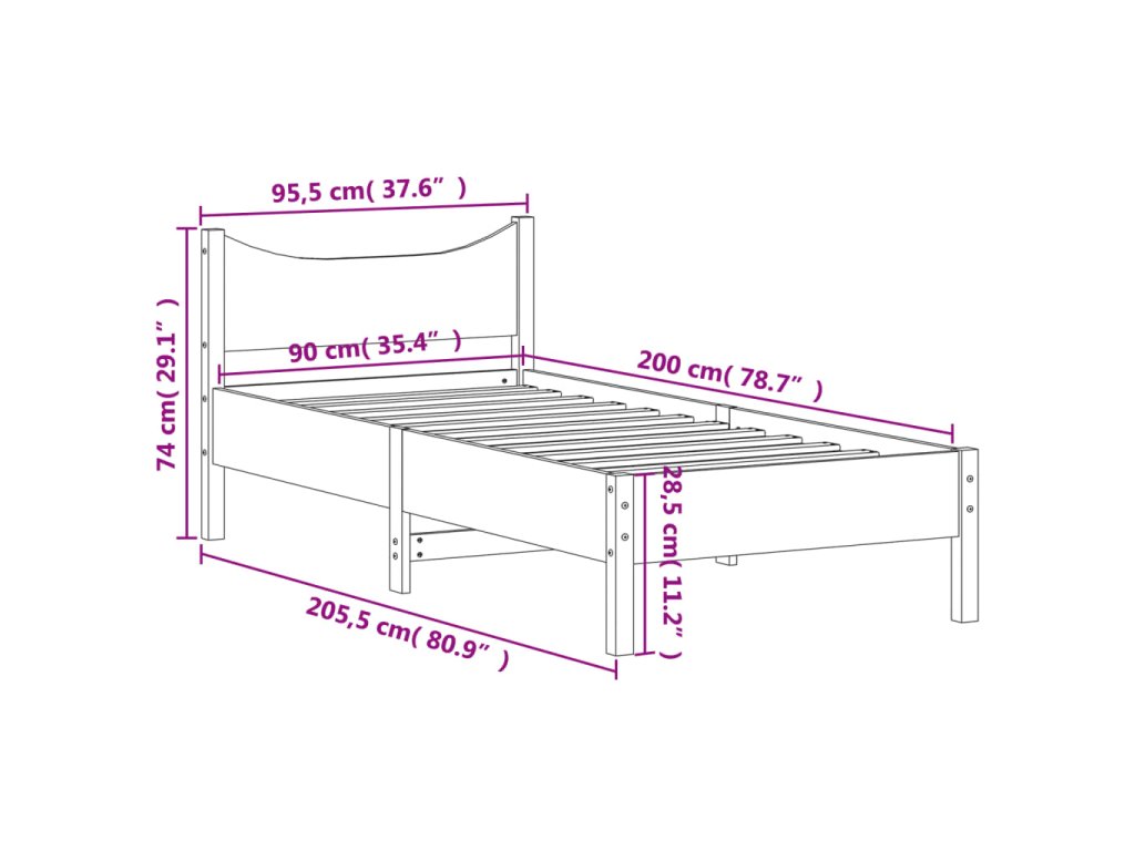 - Vhodné rozměry matrace (matrace není součástí balení): 90 x 200 cm (Š x D)