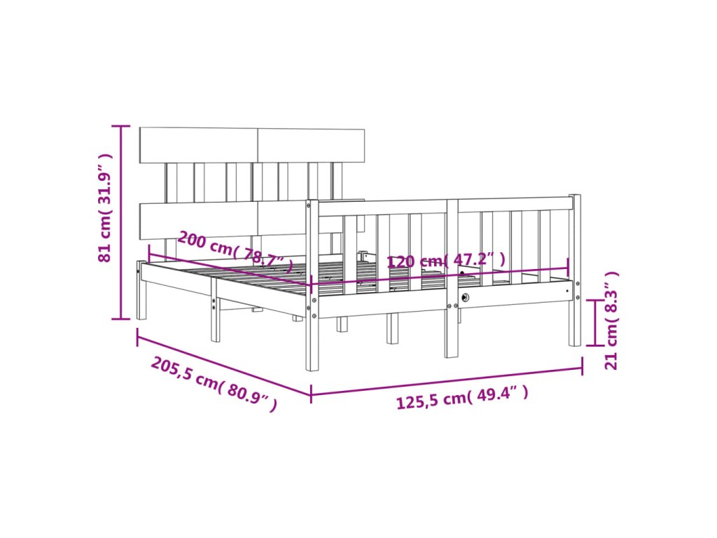 - Celkové rozměry postele: 205,5 x 125,5 x 81 cm (D x Š x V)