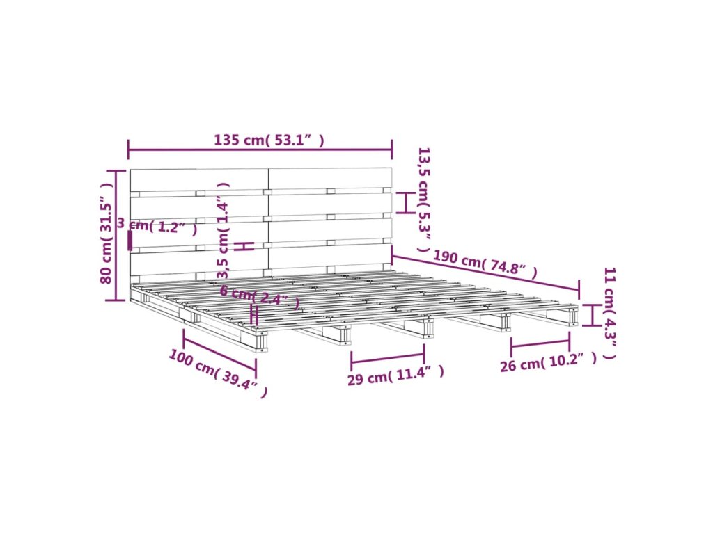 - Tento rám postele je vhodný pro matrace o rozměrech 135 x 190 cm (4FT6 Double).