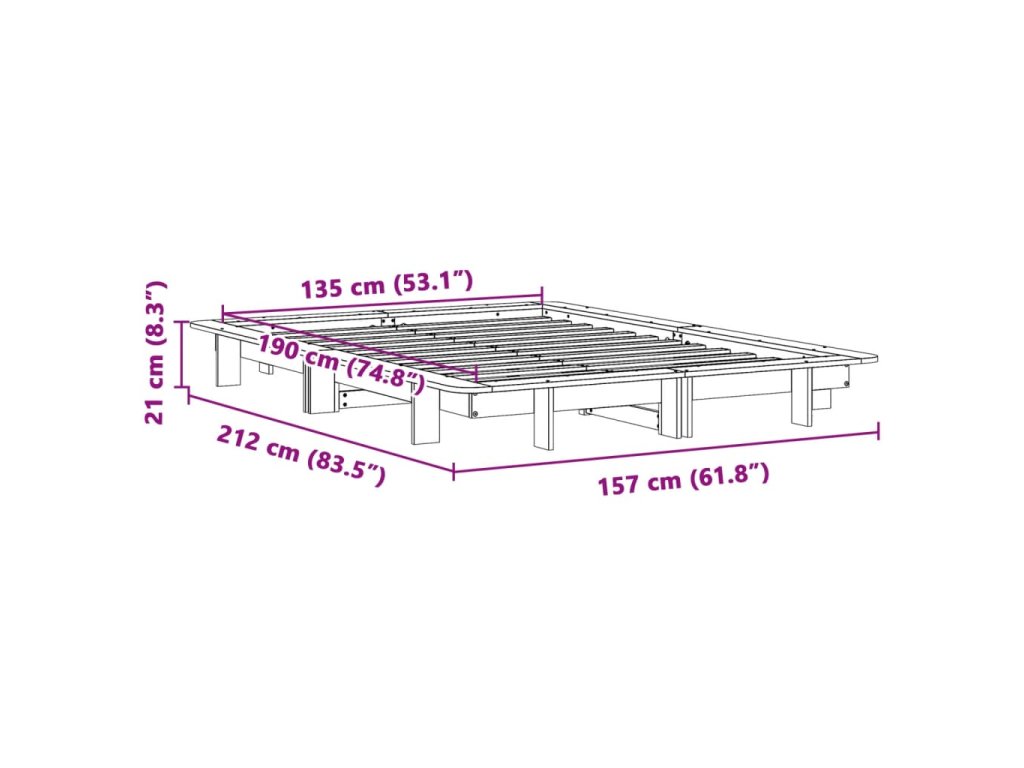 Postel bez matrace bílá 135 x 190 cm masivní borovice 850675
