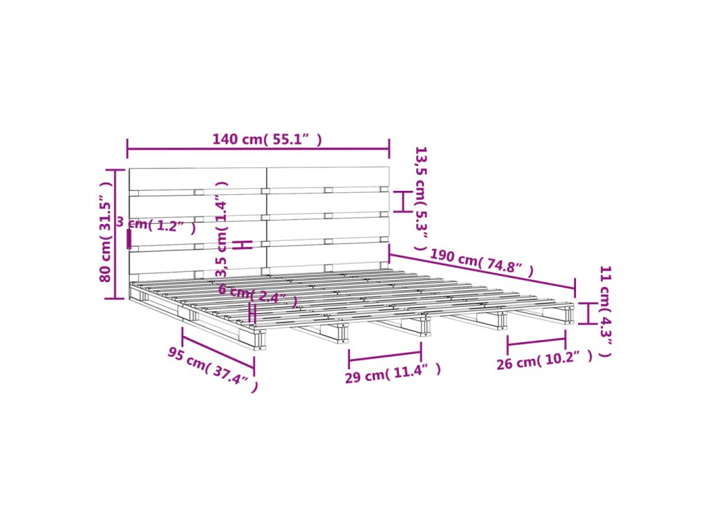 - Tento rám postele je vhodný pro matrace o rozměrech 140 x 190 cm.