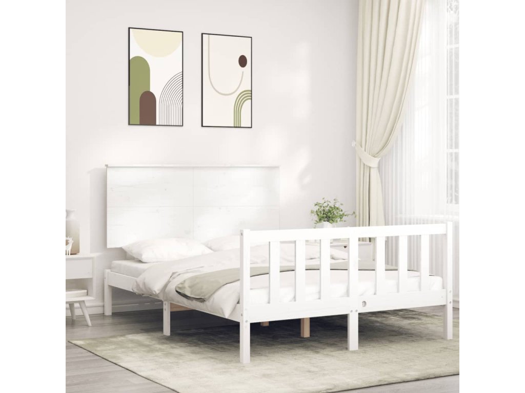 Postel bez matrace bílá 140 x 190 cm masivní borovice 3193382