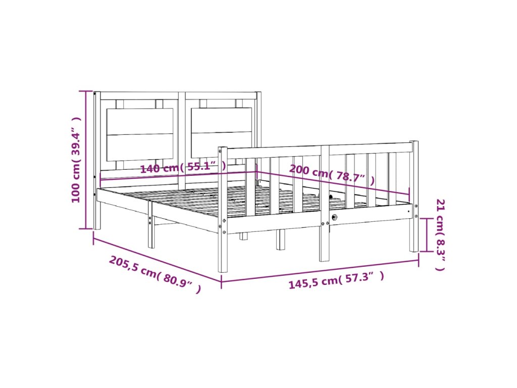 - Celkové rozměry postele: 205,5 x 145,5 x 100 cm (D x Š x V)