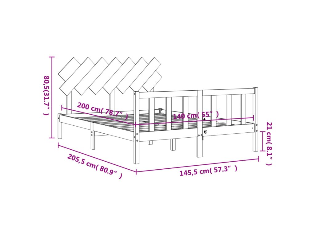 - Celkové rozměry postele: 205,5 x 145,5 x 80,5 cm (D x Š x V)