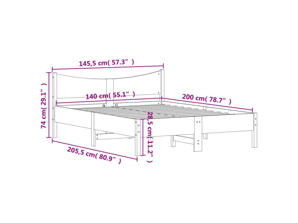 - Vhodné rozměry matrace (matrace není součástí balení): 140 x 200 cm (Š x D)