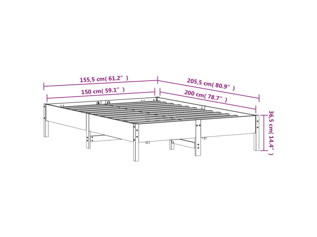 Postel bez matrace bílá 150 x 200 cm masivní borovice 842695