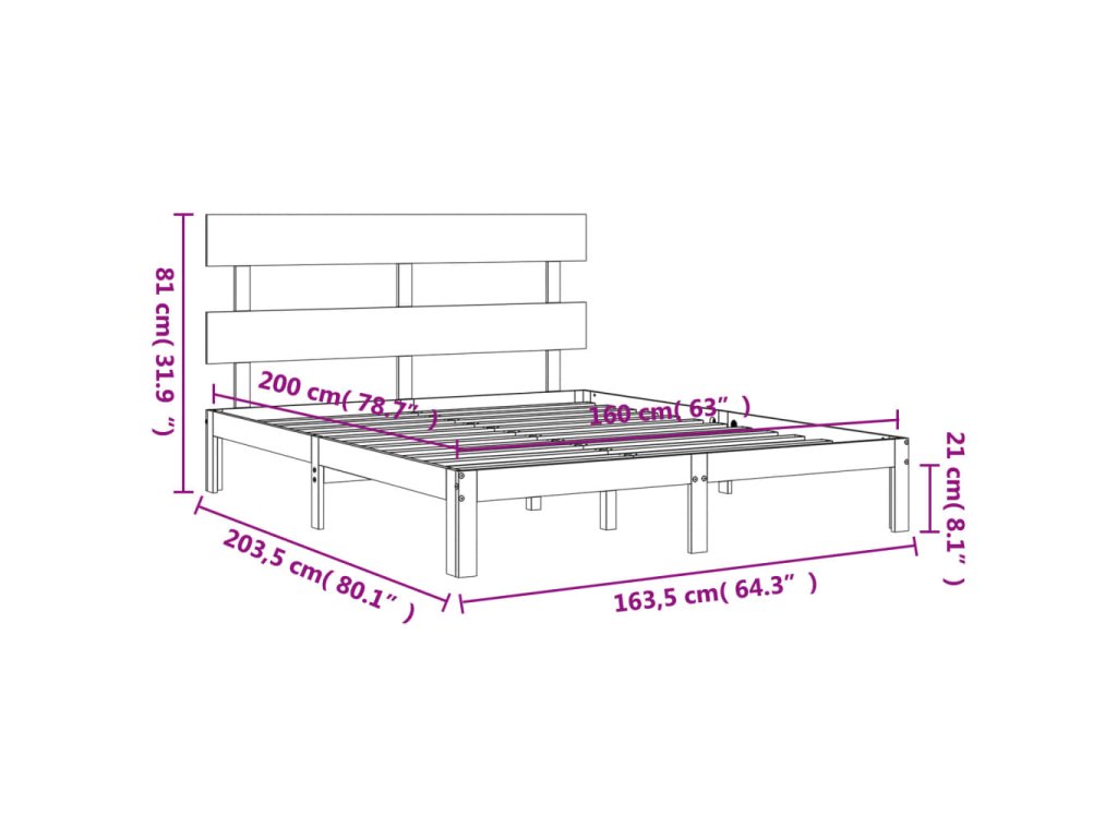 - Celkové rozměry postele: 203,5 x 163,5 x 81 cm (D x Š x V)